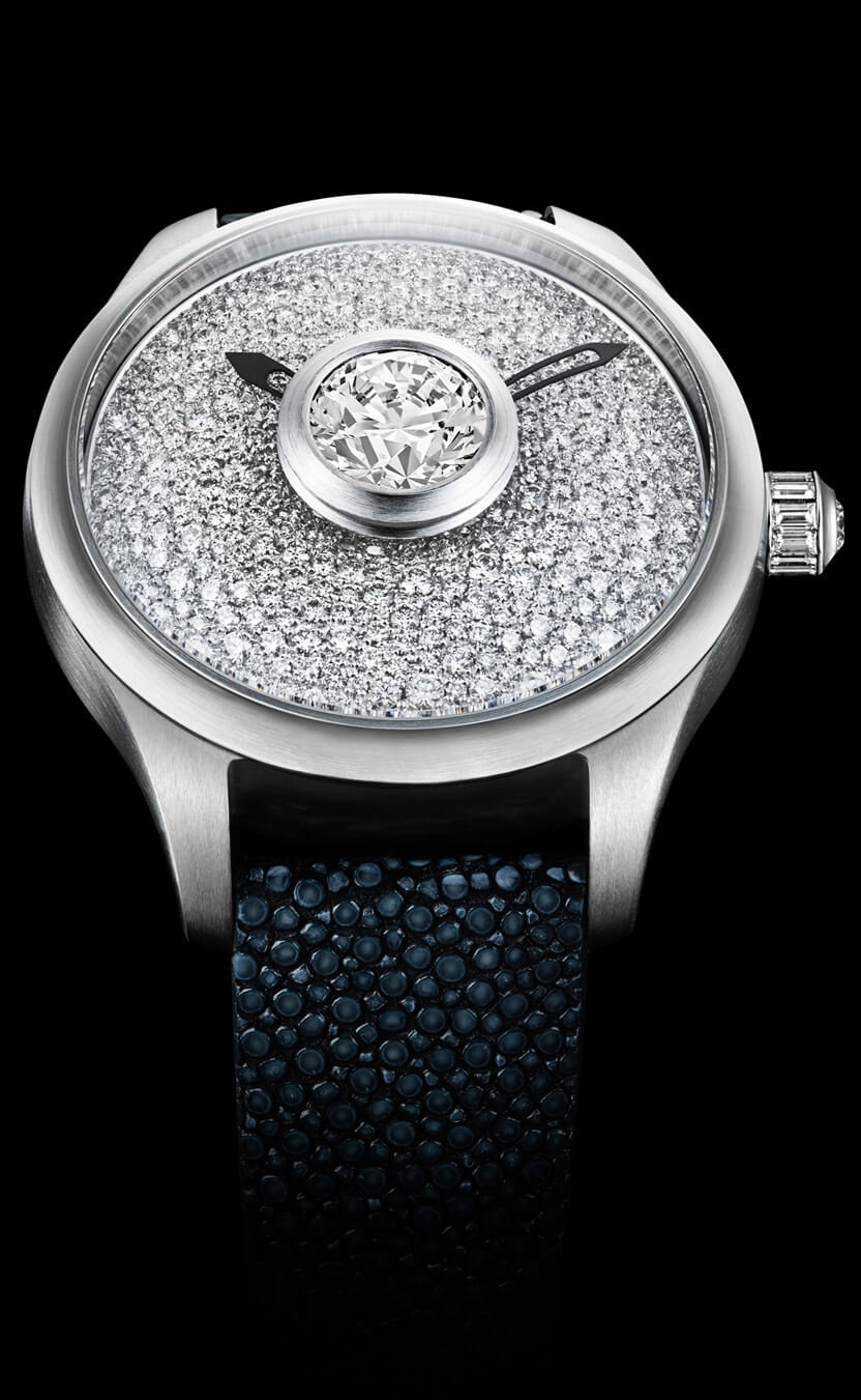 Each diamond is meticulously placed, creating a shimmering surface that captures light from every angle, giving the dial unmatched radiance.